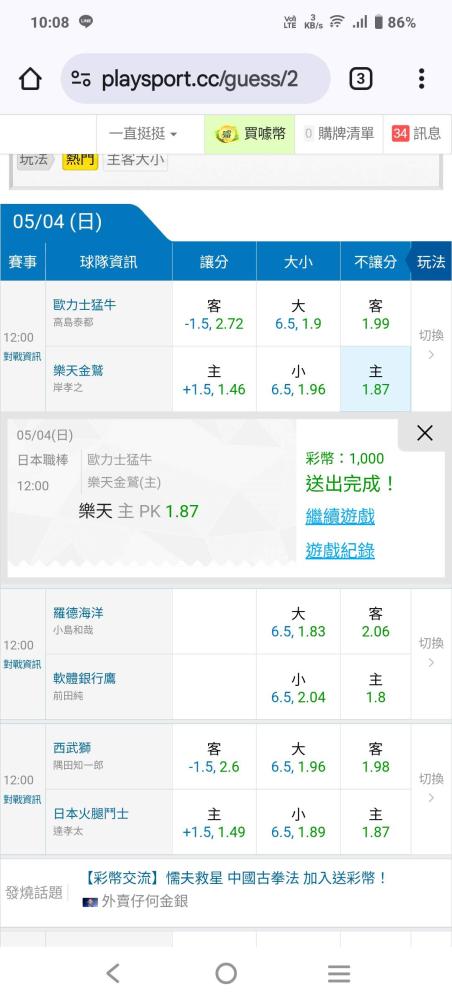 日本職棒 >> 5/3雙盤主推10倍注過盤小叮嚀串二星領錢今天邀請朋友們一起殺豬頭!