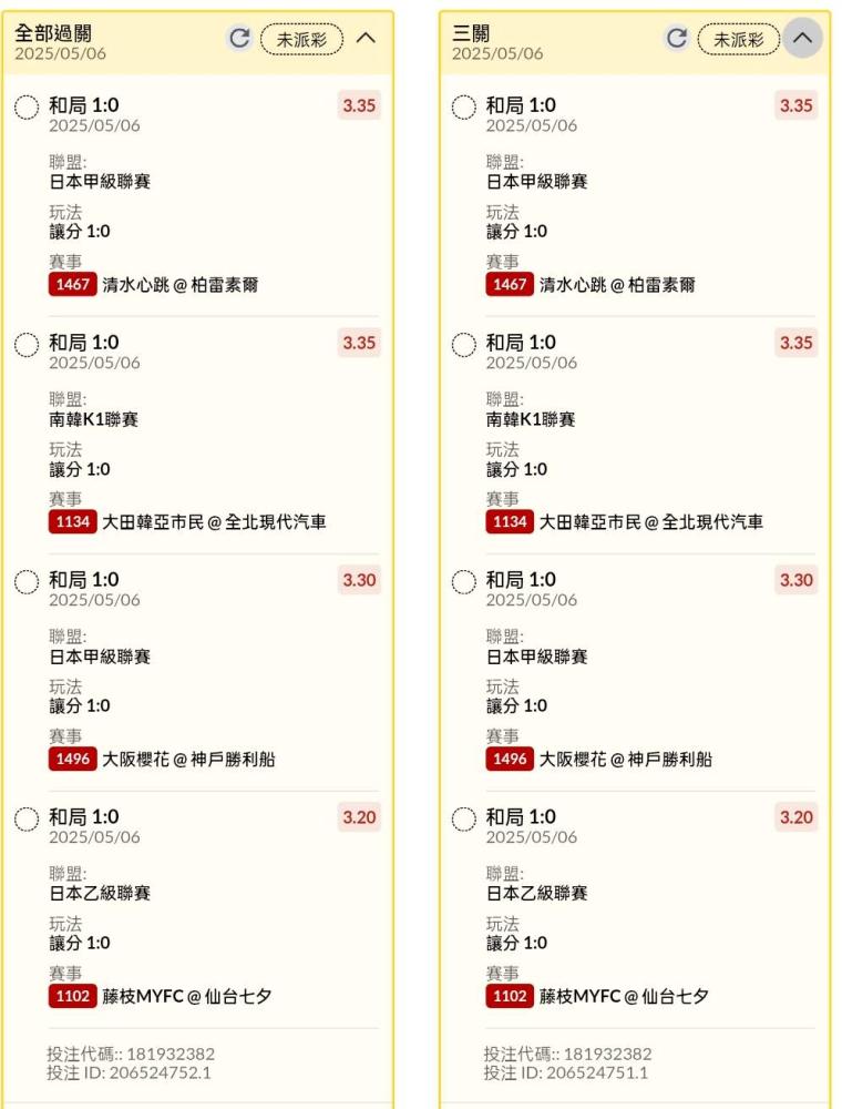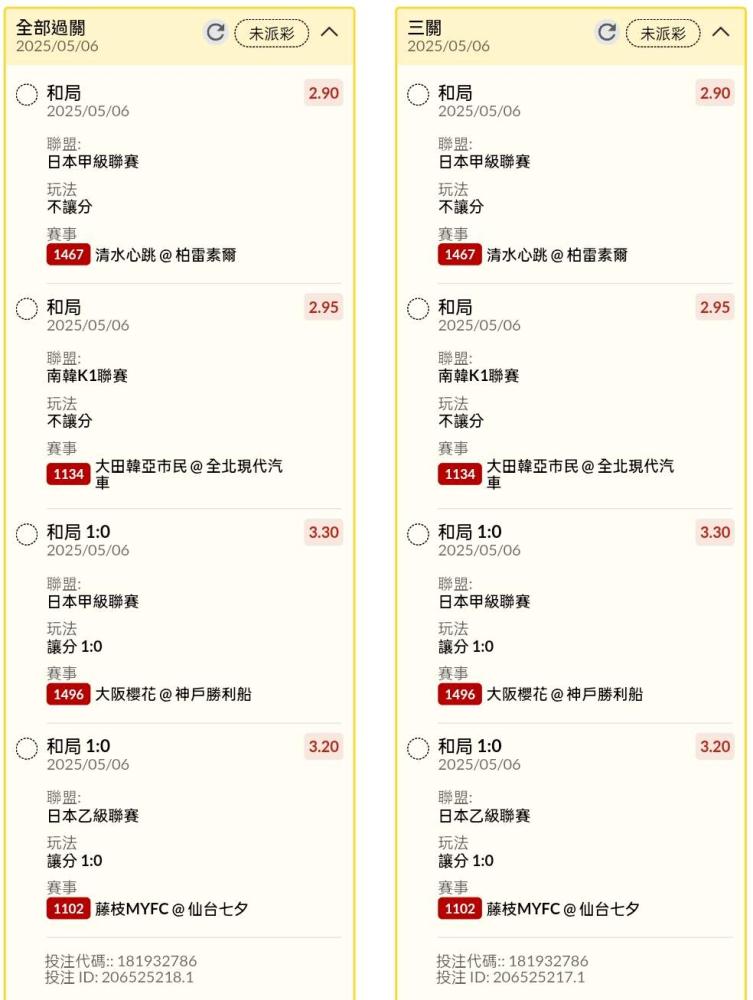足球 >> 日韓場讓分串關分享2單(4場賽事)