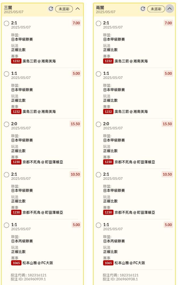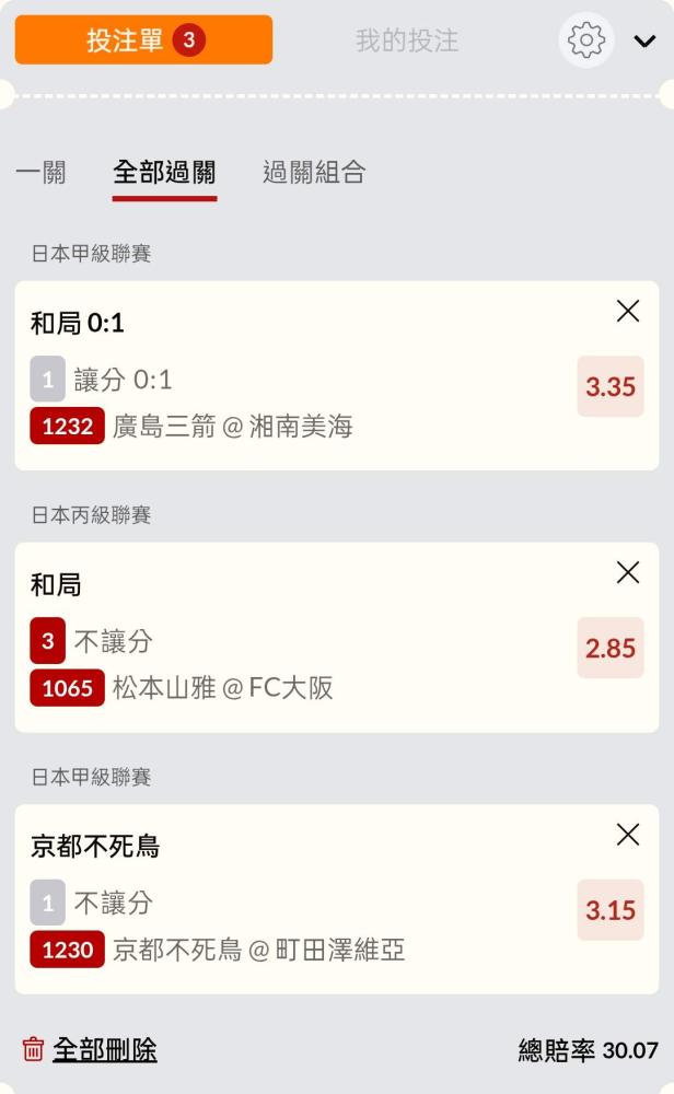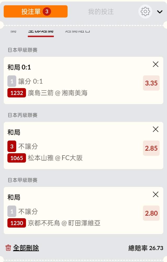 足球 >> 日本場讓分、比數串關分享2單小玩試單