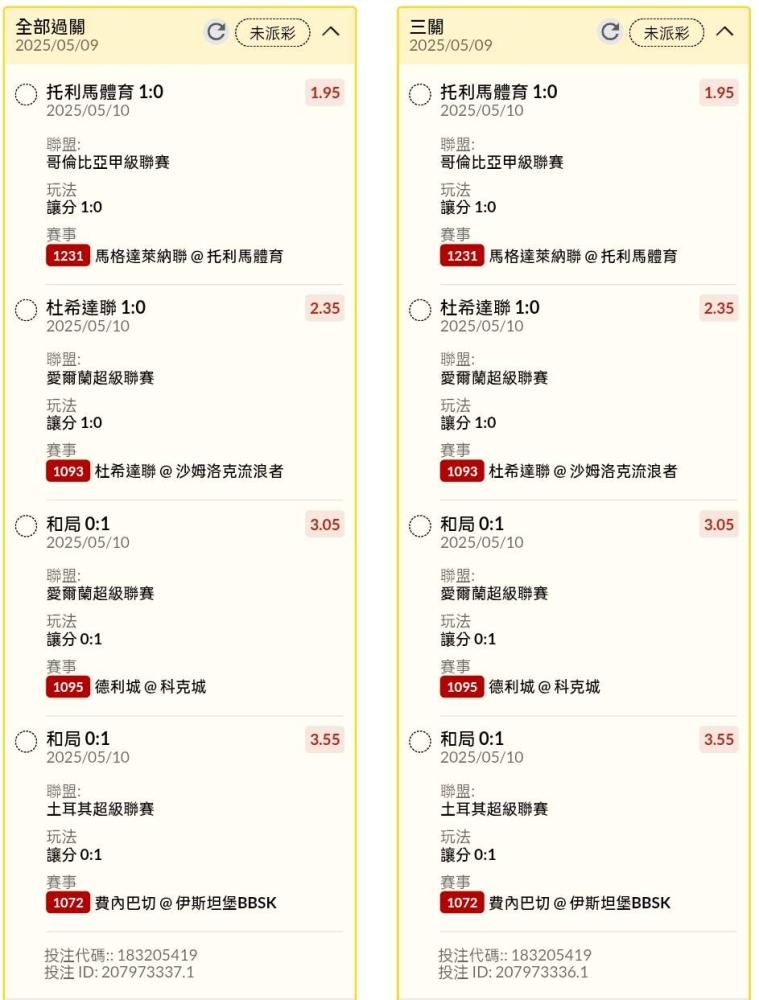 足球 >> 半夜早場讓分串關分享2單(4場賽事)