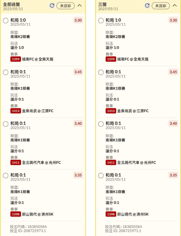 足球 >> 韓國場讓分串關分享2單(4場賽事)