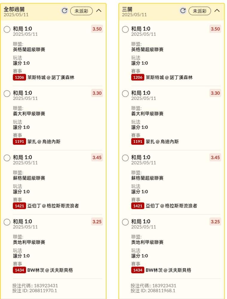 >> 晚場讓分串關分享1單
