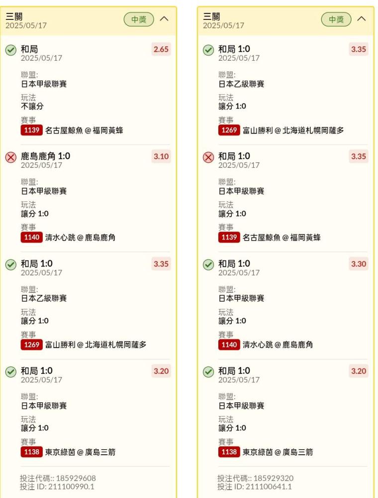 >> 日本場讓分串關4過3過2單