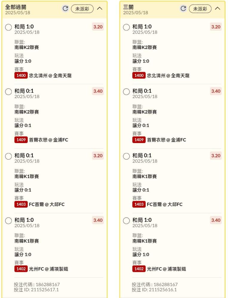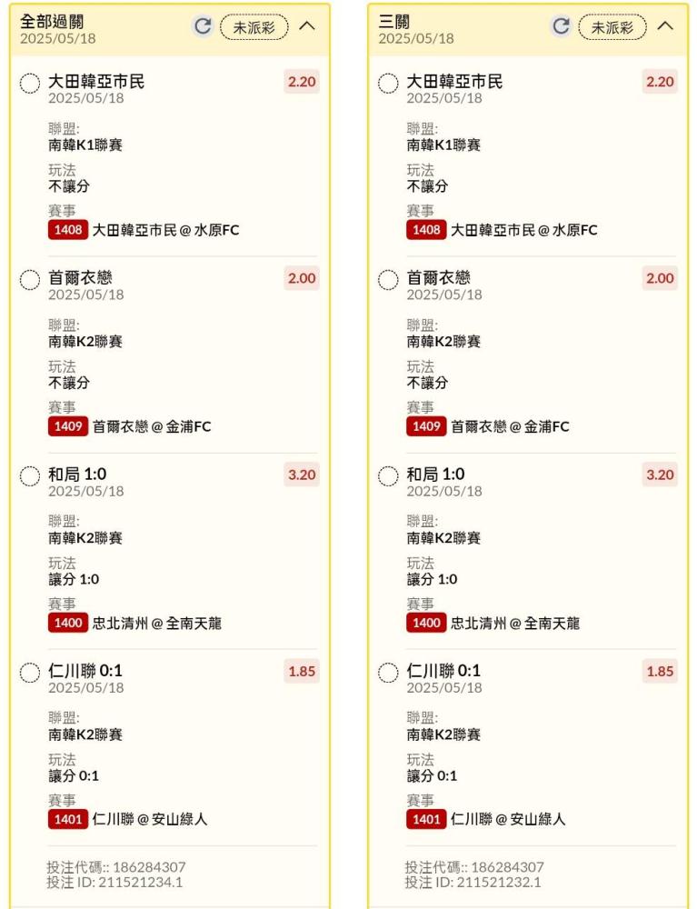 足球 >> 日韓場讓分串關分享小玩6單試單(10場賽事)
