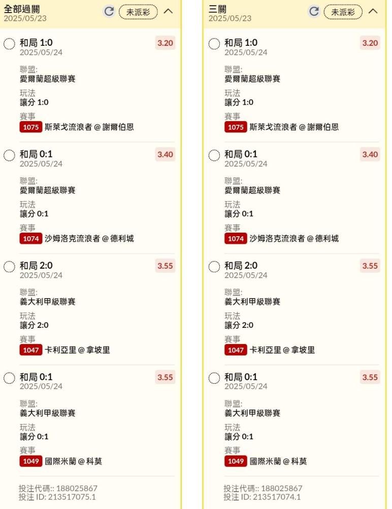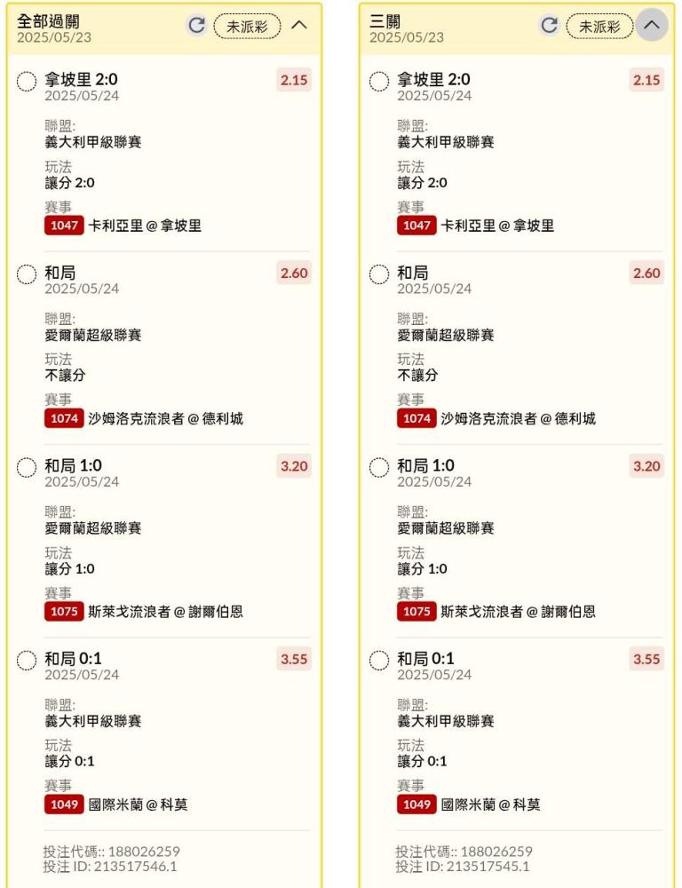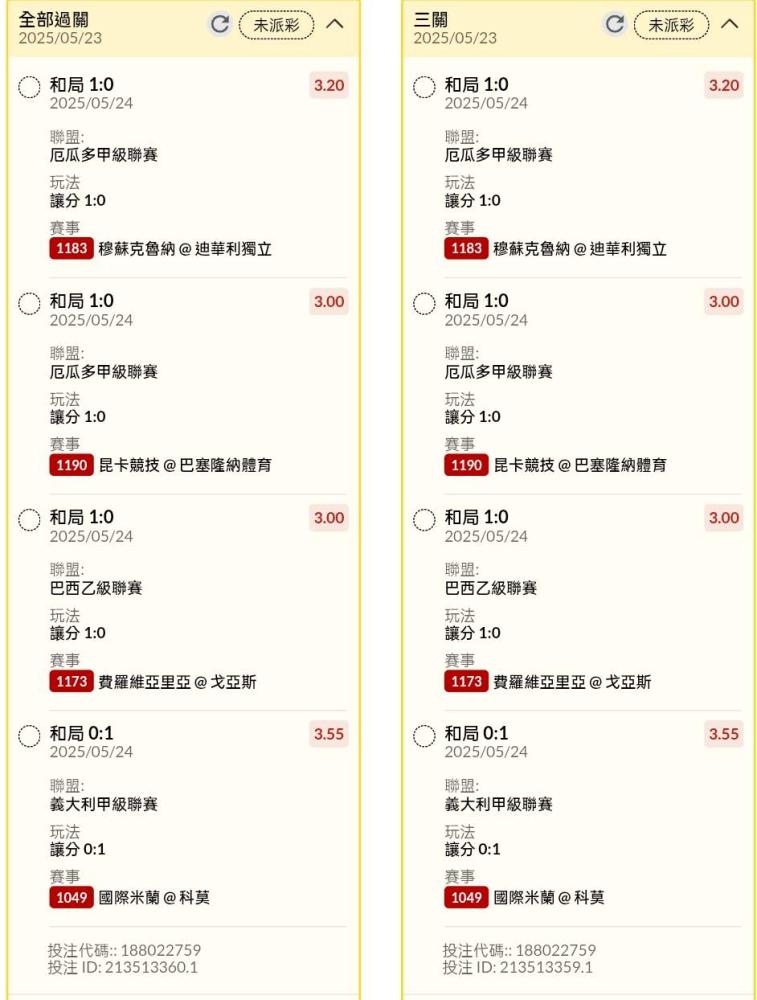 >> 半夜早場讓分串關分享4單小玩試單(7場賽事)