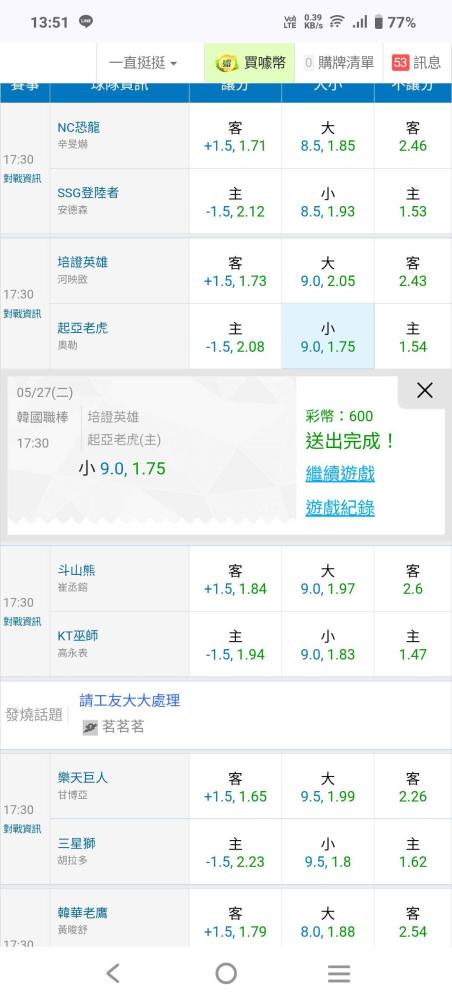 韓國職棒 >> 5/25日國際4/4轟雙盤主推小叮嚀拿下20倍注串關過三星今晚再拼上車吧!