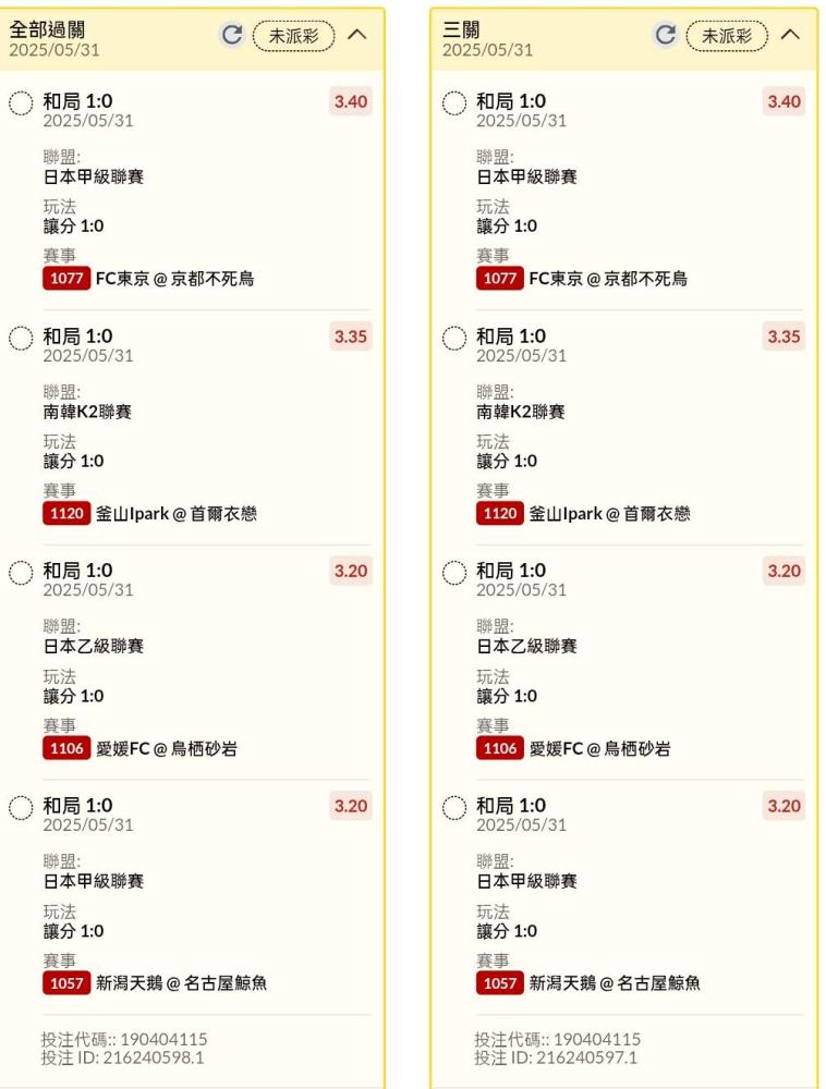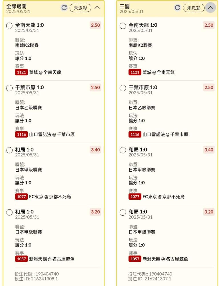 >> 日韓場讓分、不讓分串關分享小玩4單