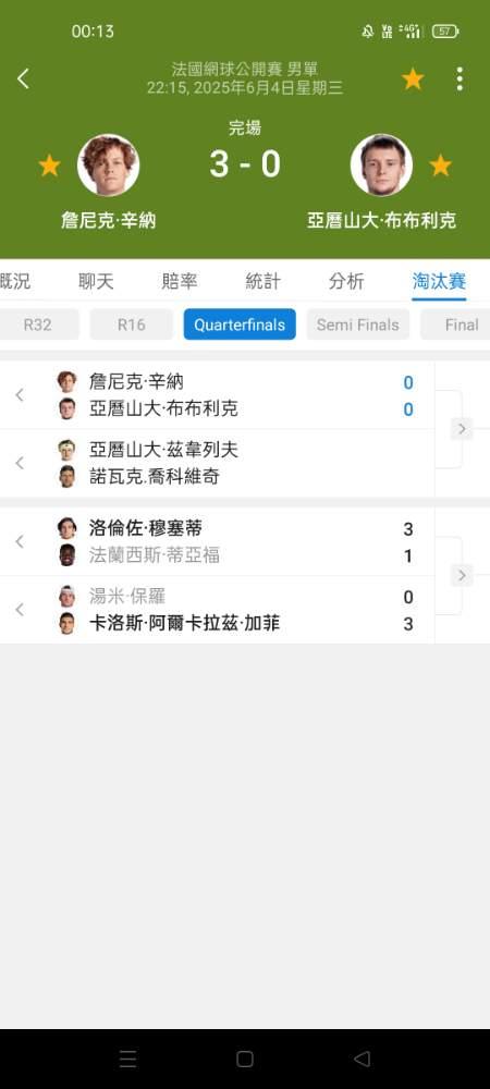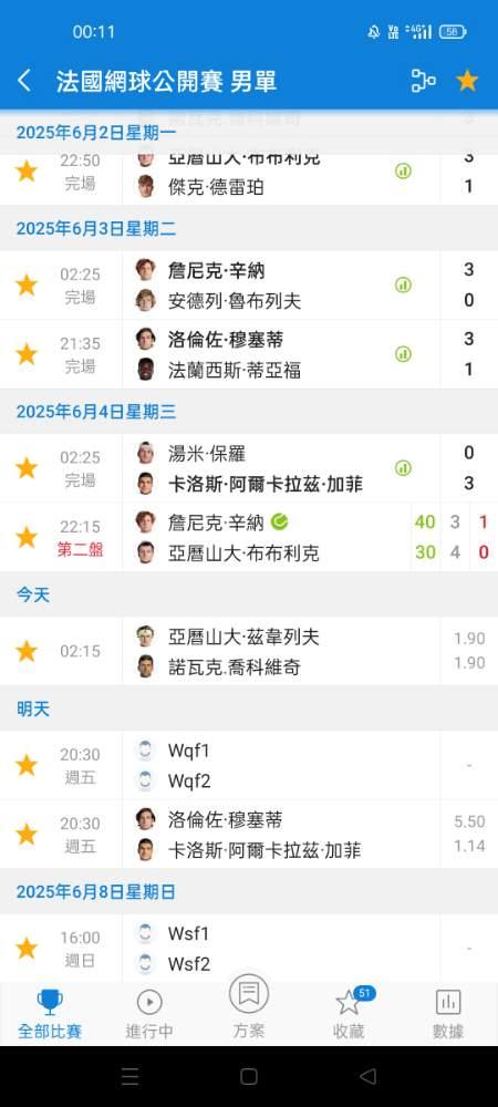網球 >> 第三盤辛辣讓2.5因該會正盤