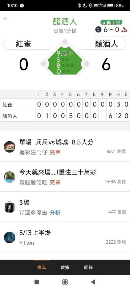 >> 感謝 釀酒人今天喝茅台讓分過關,菜鳥初登板拿勝投
