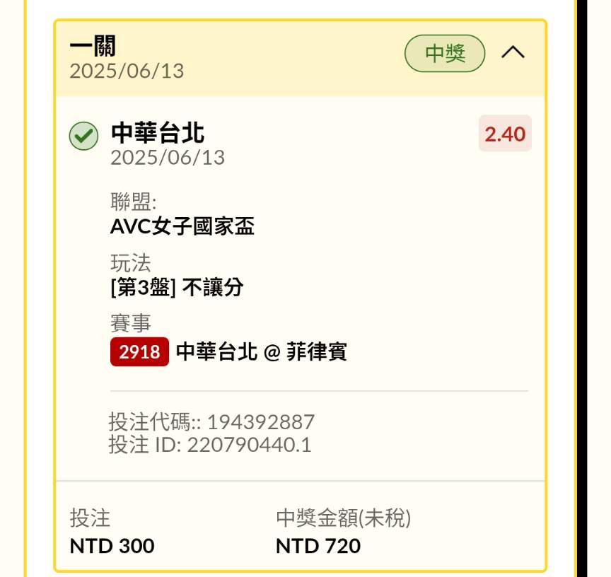 >> 中華隊 第3第4+獨贏!