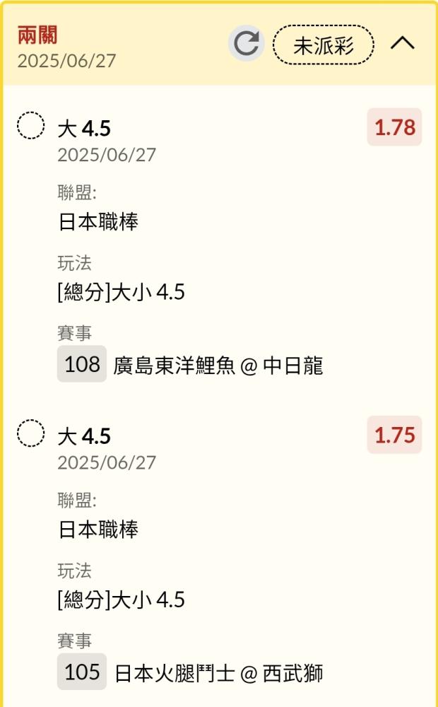 日本職棒 >> 台彩賽前、場中500注❗️