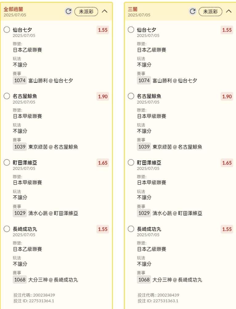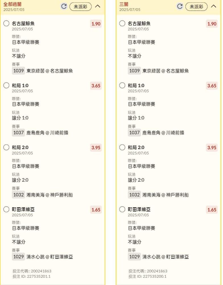 足球 >> 日本場讓分、不讓分混串串關分享小玩4單