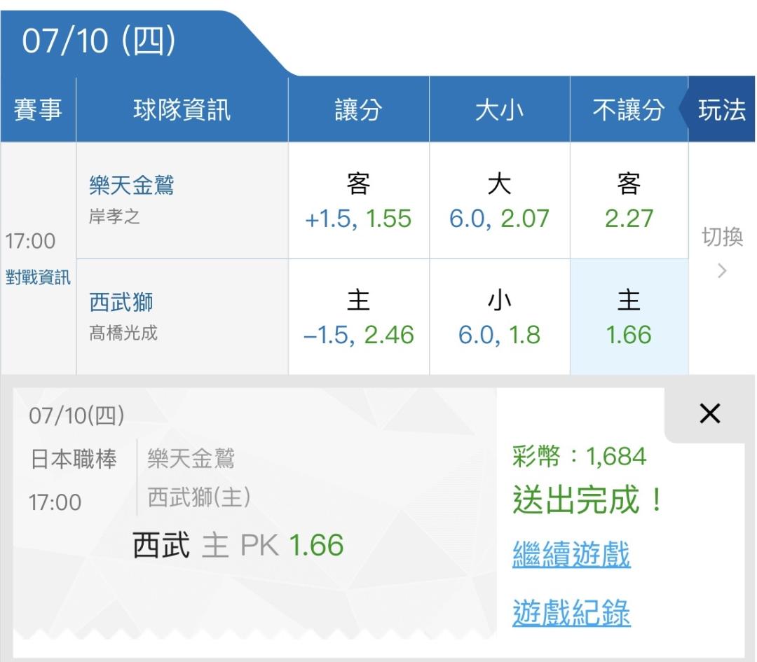 免費分享一場西武pk
