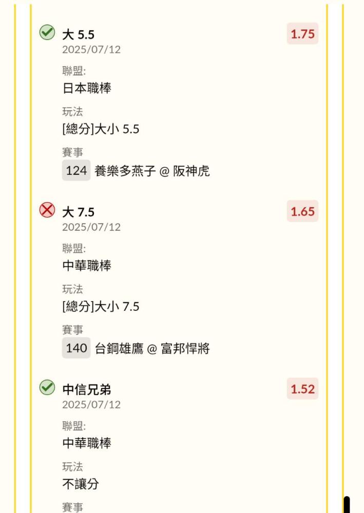 中華職棒 >> 中日職串五關全過盤💰