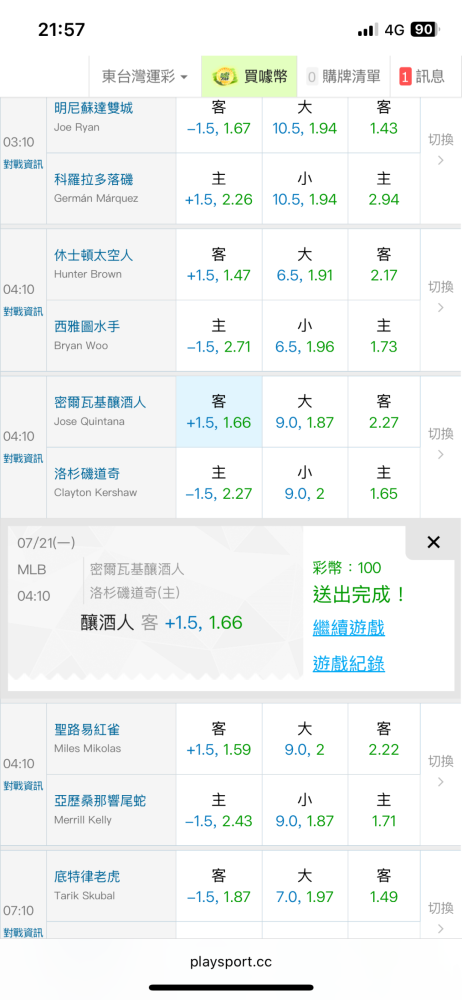 MLB >> 7/21東台mlb運彩盤【主推近40日過33】國際盤【主推近15日過12】主推信心滿滿(貓場)~