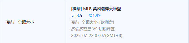 🎯 推薦方向: ✅ 主推:大分(Over 8.5) ✔️ Rodón近況下滑,長打增加 ✔️ Gausman壓制力不足,遇強隊常爆 ✔️ 藍鳥打線近期也有復甦 ✔️ 洋基全隊轟炸力不減,爆一局就夠開盤