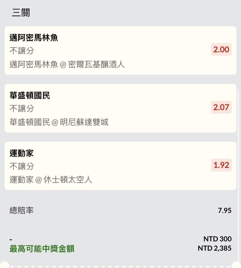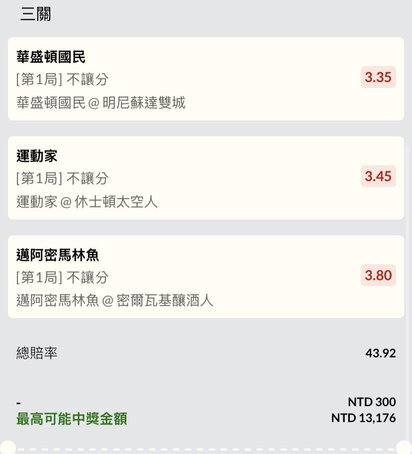 MLB >> 3串、第一局、勝分差