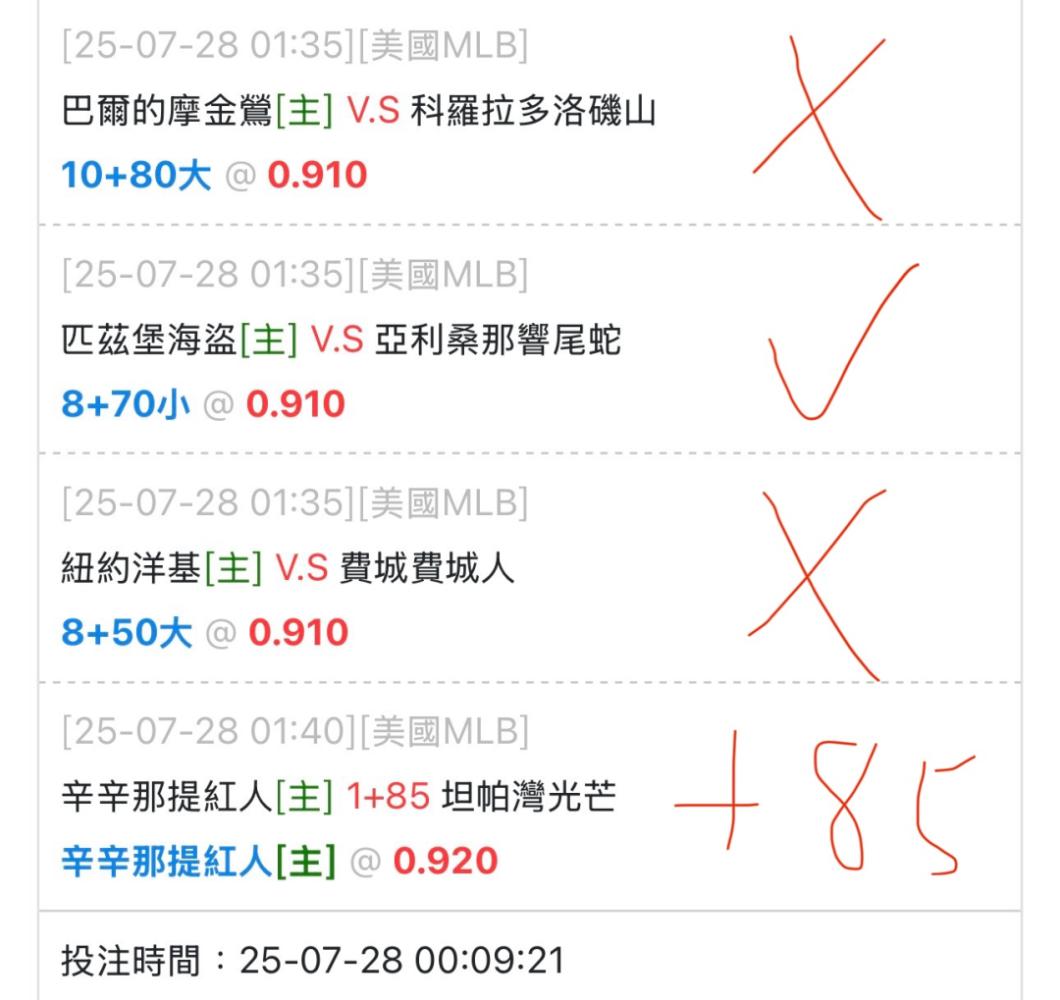 MLB >> 今天買了 4張串關