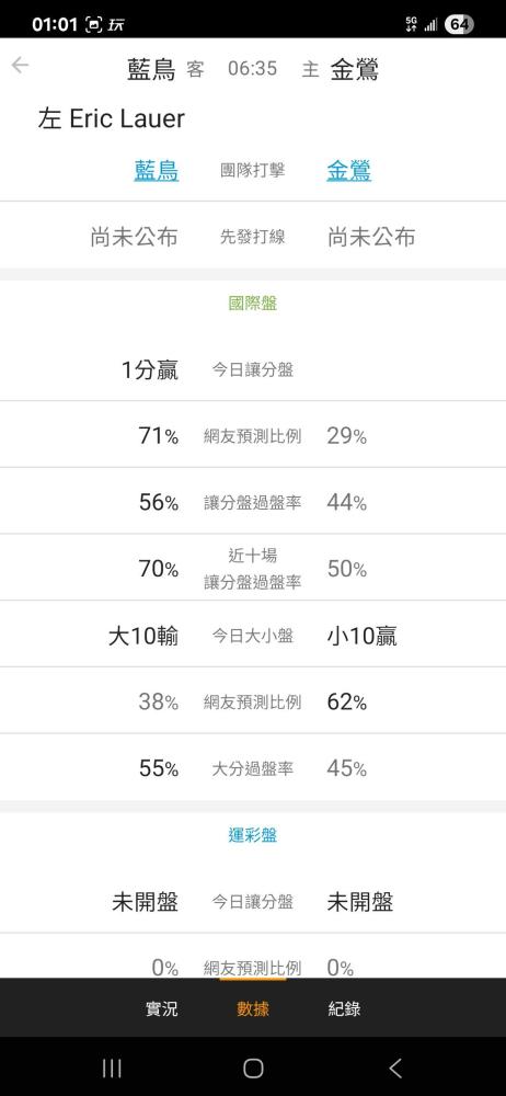 請問以下台灣運彩藍鳥那場是現在的場還是6點的場