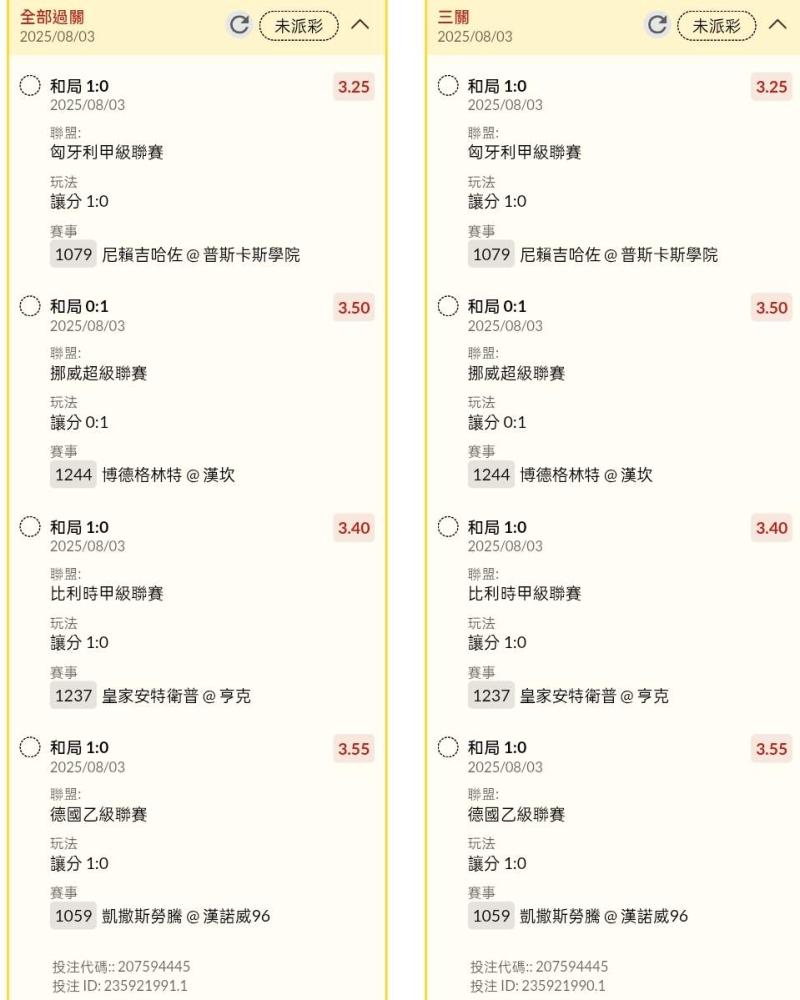 >> 晚場讓分串關分享小玩2單試單(4場賽事)