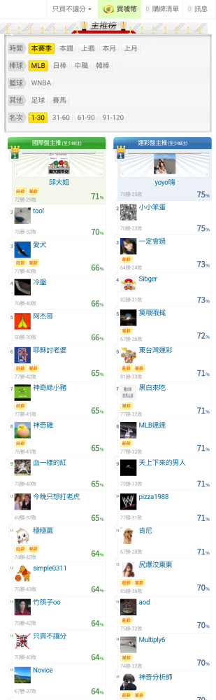 如上圖 主推榜 MLB 本賽季 國際盤主推 第14名