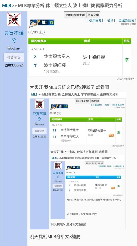 這就是專業 專業的分析 以後買MLB前 先來看看我專業的分析吧  |