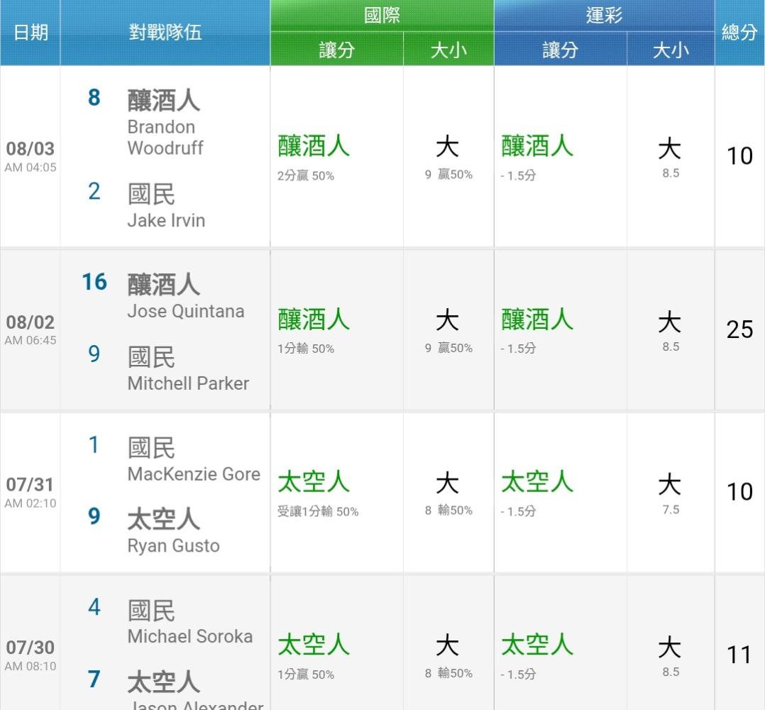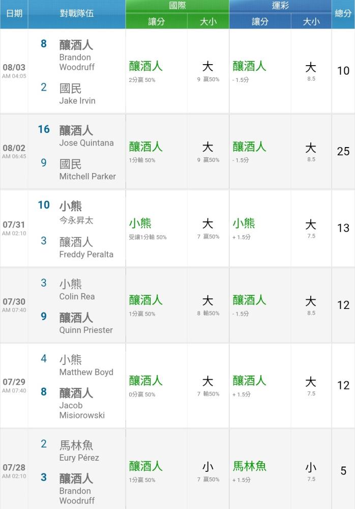 如上圖 釀酒人 最近6場 打出了5勝1敗 戰力穩定阿