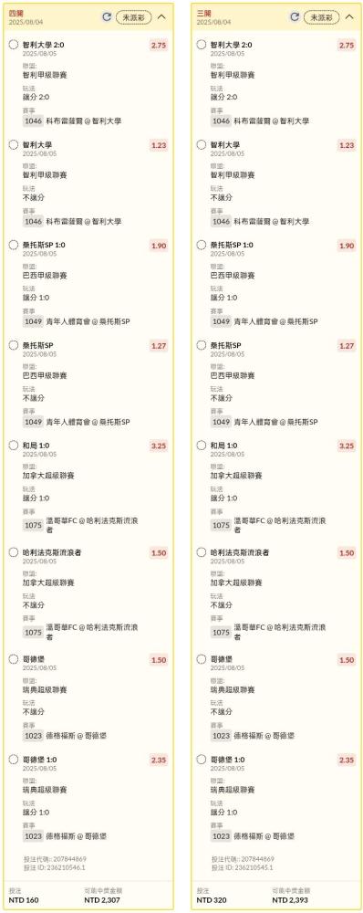 足球 >> 半夜早場不讓分讓分組合串關分享小玩2單試單(4場賽事)