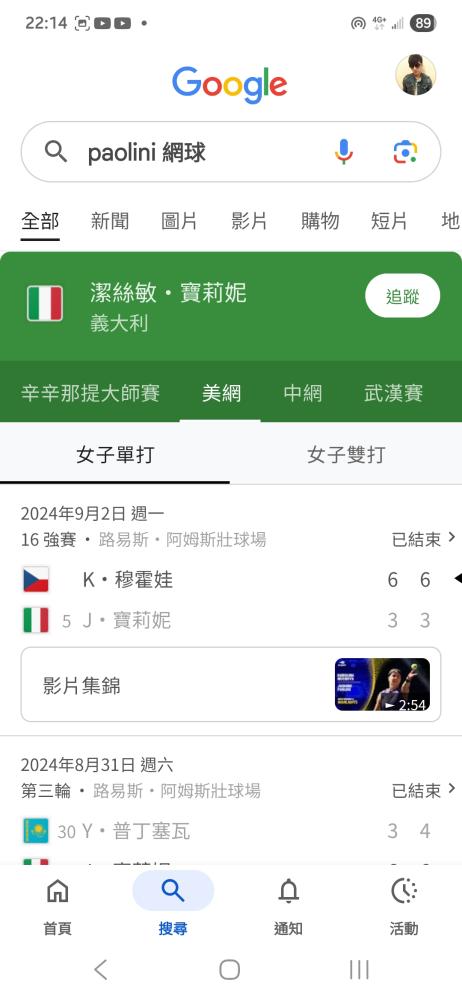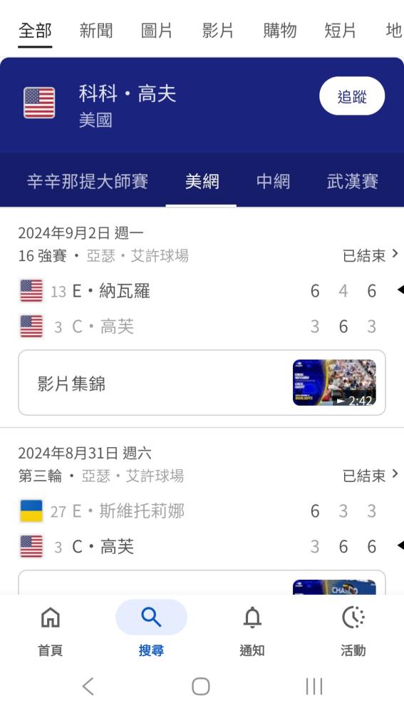 網球 >> 8/5〈網球〉WTA-蒙特利爾公開賽