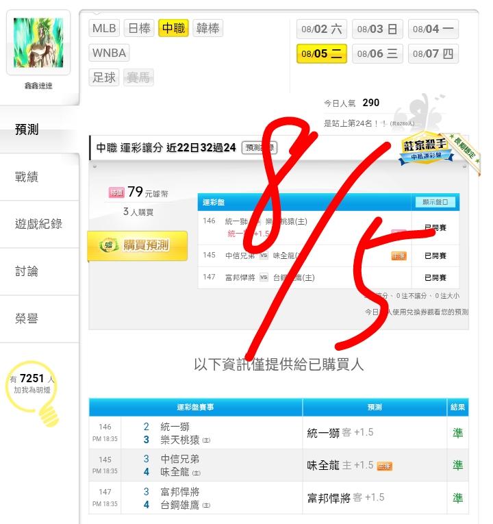 中華職棒 >> ⭐⭐昨日3過3全贏,中職 運彩讓分 近22日32過24,信心主推99%貓場50倍注,一注翻綠⭐⭐