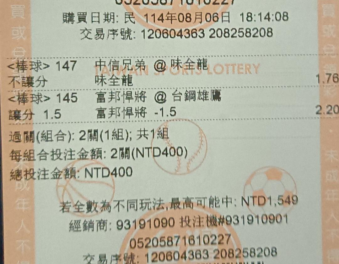 生涯對兄弟14場.4勝5敗.2025已經0勝2敗.應該反彈了? 兄弟星期三5勝ˇ7敗.1場贏1分.味全6勝5敗 羅戈沒被味全打過全壘打 威剛給味全倒打賠率..