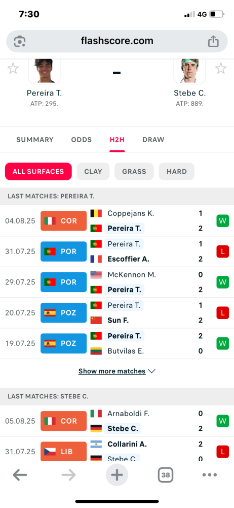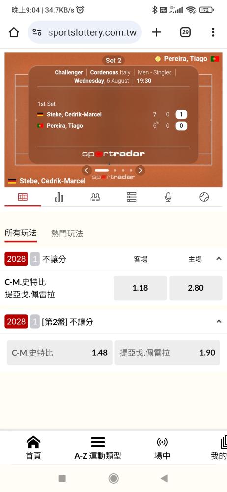 網球 >> 野雞場 C-M.史特比 提亞戈.佩雷拉 場中