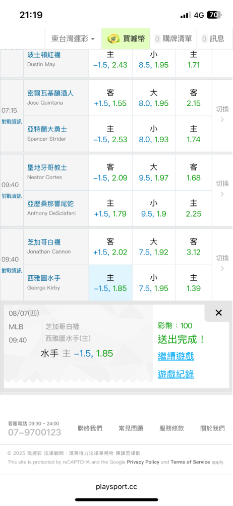 MLB >> 8/7東台mlb國際盤【主推30日過24】主推04:40太空人vs馬林魚 主推信心滿滿(貓場)~