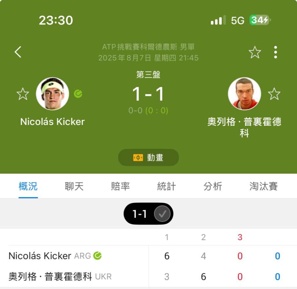 網球 >> 鳥剛/普里霍科 @ 尼可拉斯.基克(第二盤8.5大)