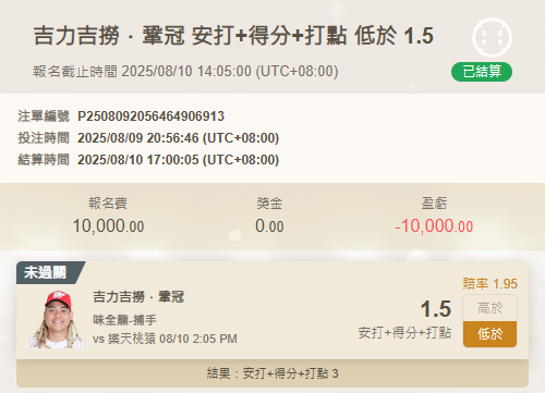 >> 08/10 2:05 PM 味全龍VS樂天桃猿 未收😭 我會更加努力