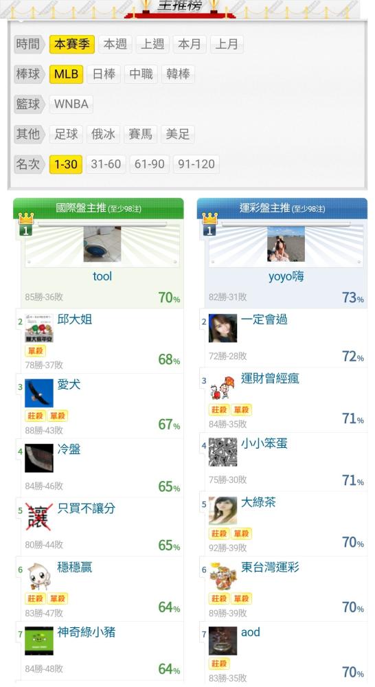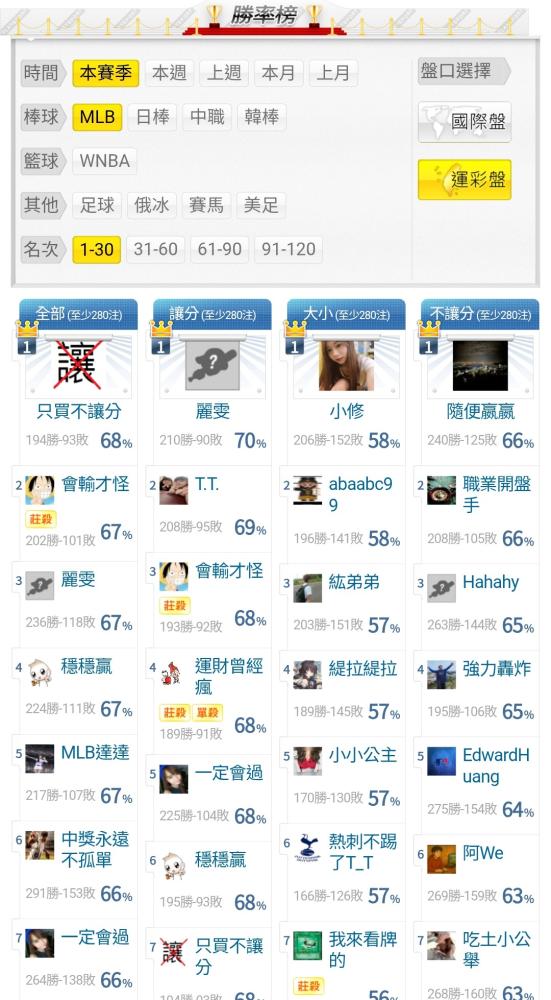 請看圖 勝率榜 MLB 本賽季 運彩盤 全部 第1名