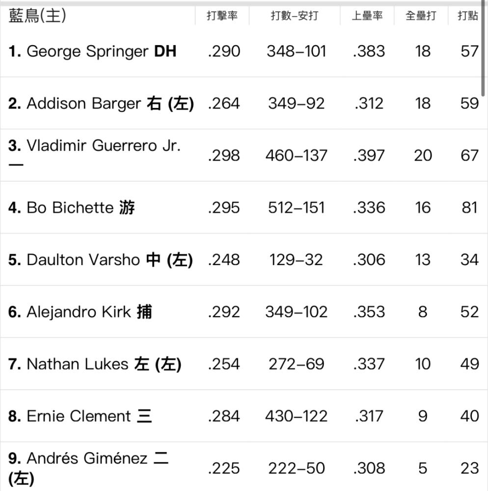 不過昨天藍鳥的打線是被遊騎兵壓制,但除此場前,表現都不錯。