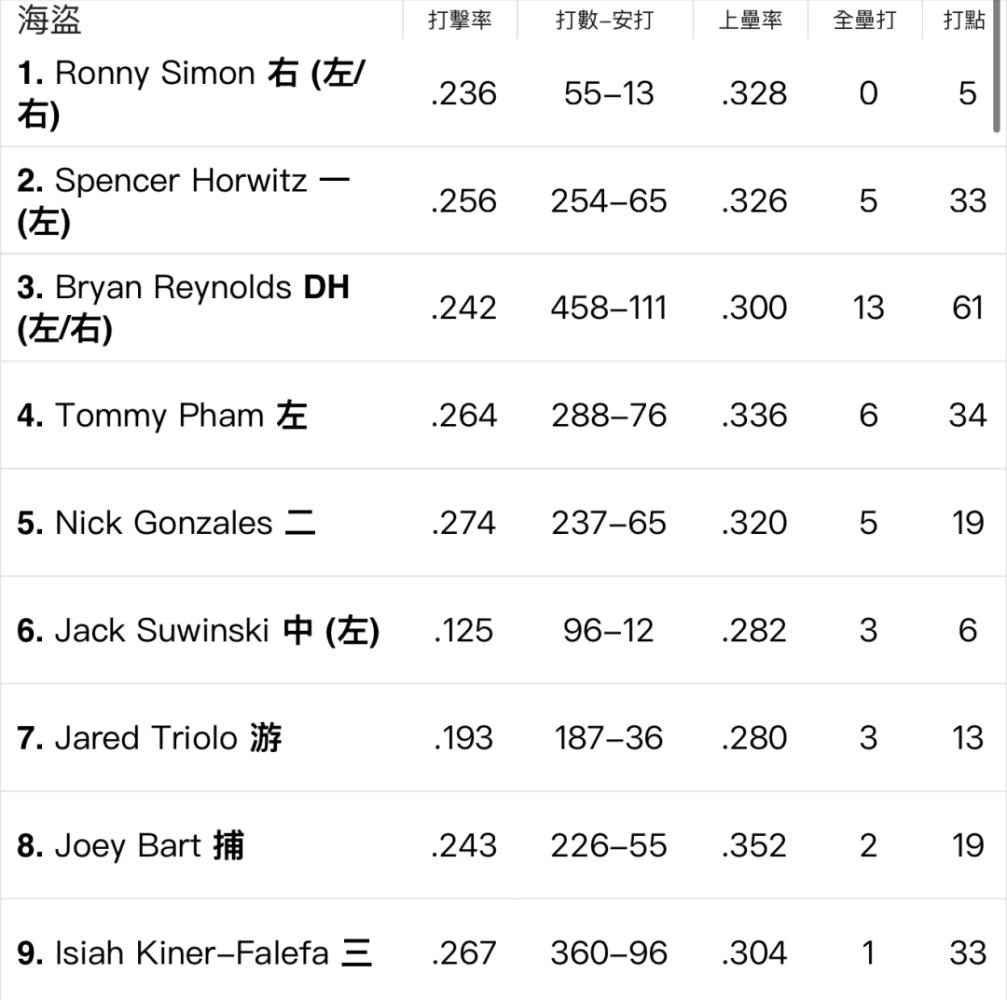 海盜🏴☠️打線很吃氛圍,畢竟年輕人居多。
