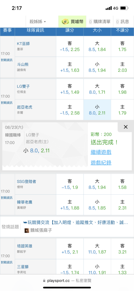 >> 韓棒分享(主推連贏四天)