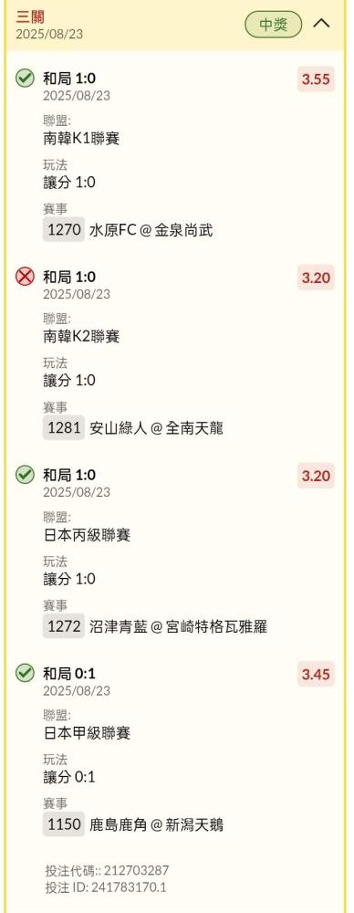 過關炫耀 >> 日韓場讓分四過三 39倍
