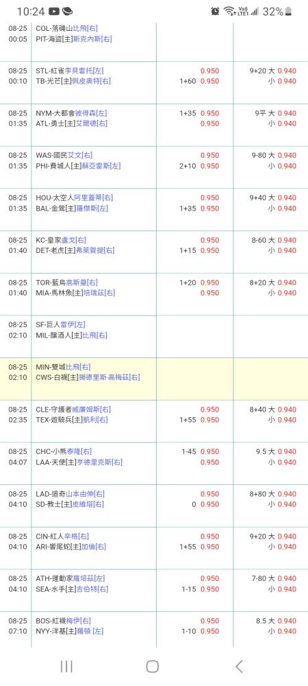 >> 08/25 MLB 初盤