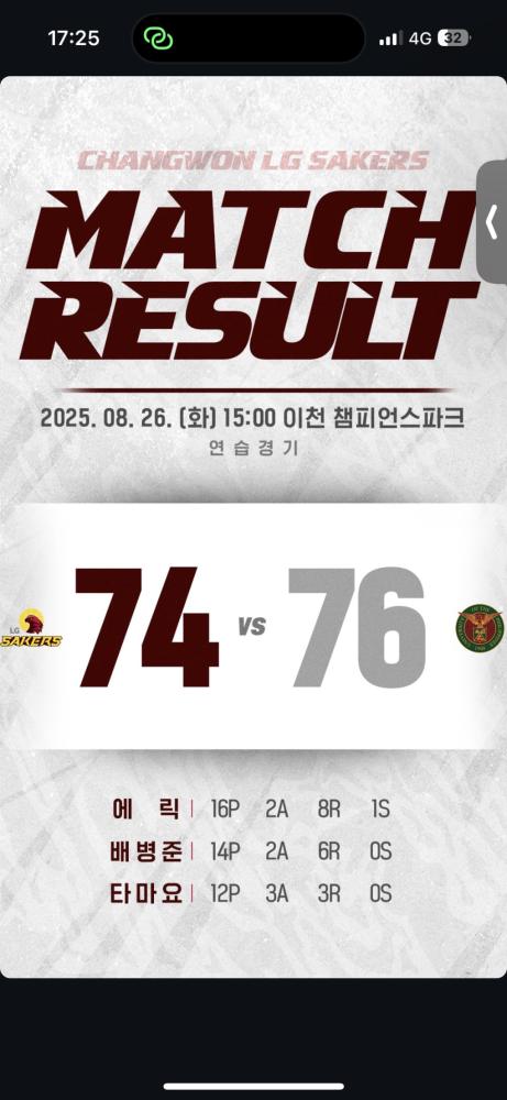 國際籃賽 >> 14:00籃球友誼賽 LG昌原 菲律賓戰鬥歇紅 總得分