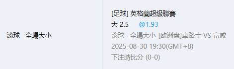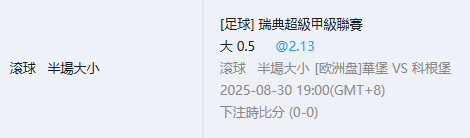 足球 >> 8/30 滾球假日局~~