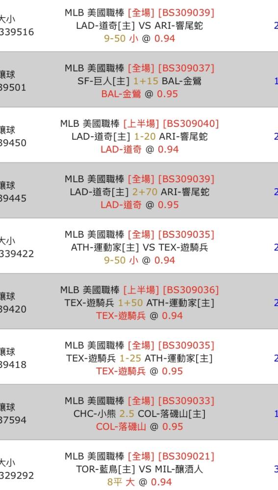 MLB >> MLB 美職 尾四場 下注參考