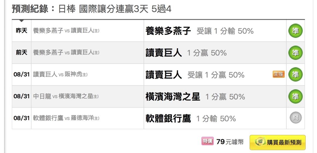日本職棒 >> 日棒 國際讓分 連贏3天5過4 特價79 歡迎參考
