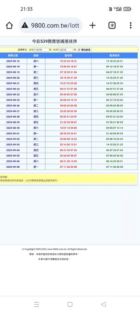 彩球 >> 9/8(539總合)
