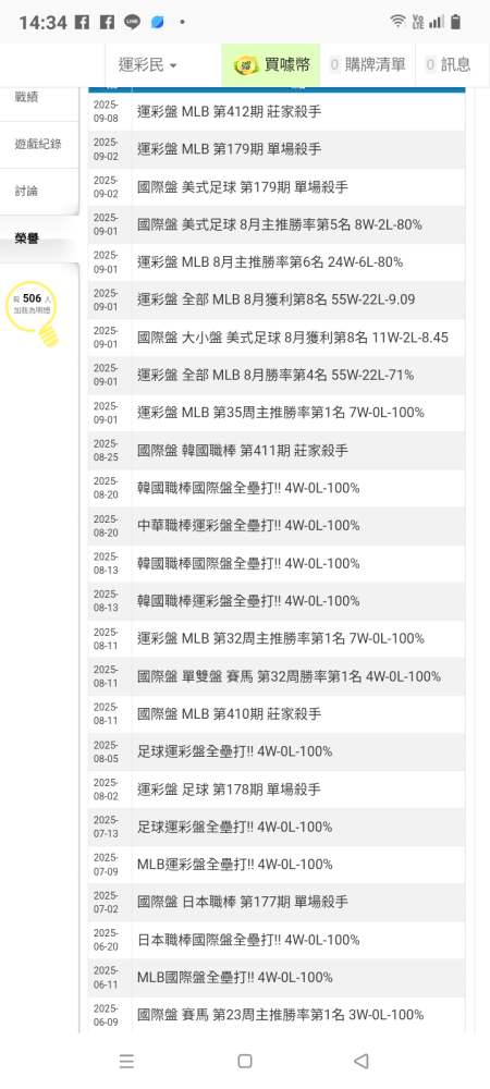 成績單..今天又得了一個殺手莊殺..月初得單殺