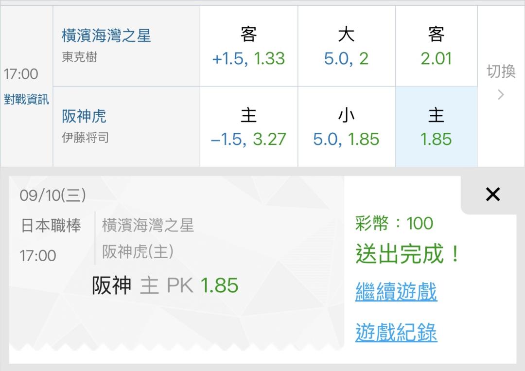 日本職棒 >> 9/10 日棒單場 輻射魚vs巨人