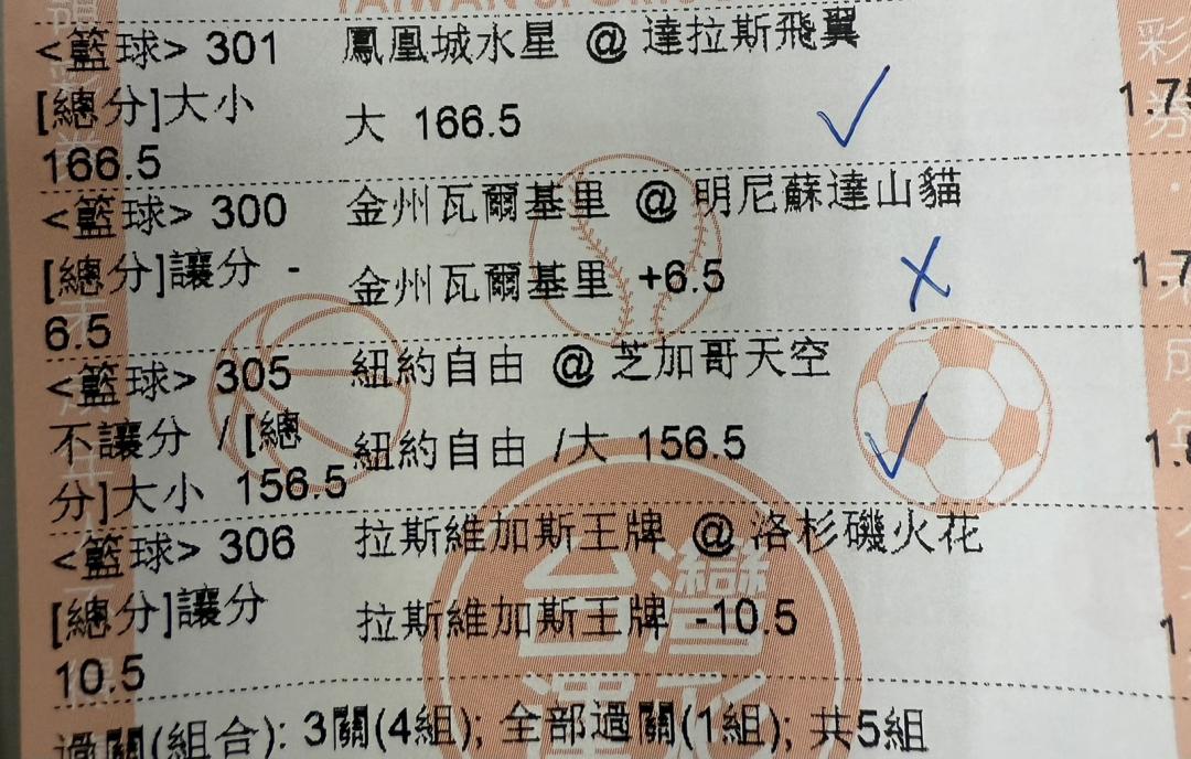 金州山貓這場,想說金州受讓這麼少,應該有鬼 選擇抓鬼買受讓 結果失敗~~ 有可能又是一關魂保本小輸了