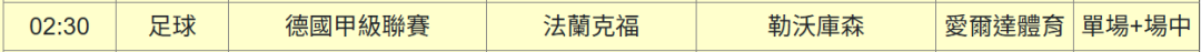 足球 >> 連續7天命中正確比分-[凌晨2:30 台彩單場 德甲 勒沃庫森V法蘭克福]-有正確比分推薦